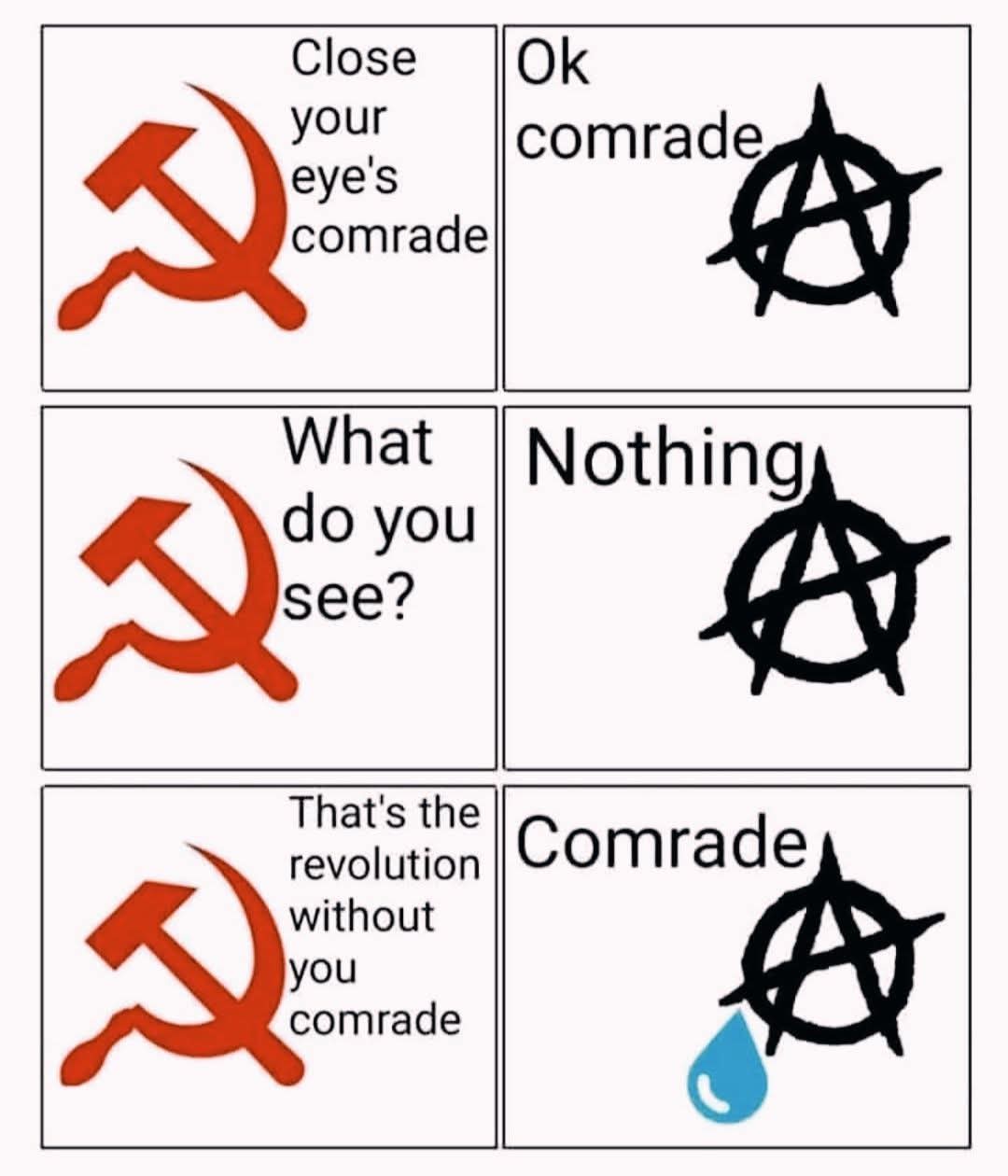 MTZ@lemmy.world to Lemmy Shitpost@lemmy.world · 1 day agoA communist and an anarchist walk into a bar..lemmy.worldimagemessage-square37fedilinkarrow-up1430arrow-down149
