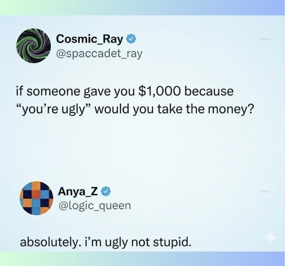 ickplant@lemmy.world to Lemmy Shitpost@lemmy.world · 16 hours ago$1,000 richer lemmy.worldimagemessage-square37fedilinkarrow-up1806arrow-down14