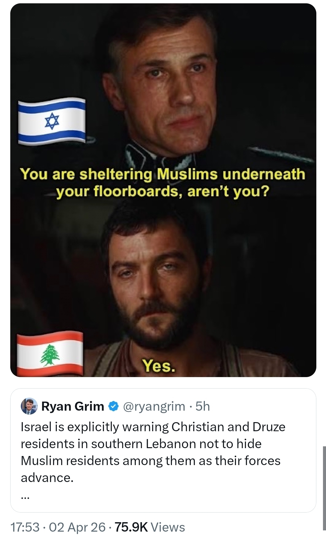 Tadeusz@szmer.info to Memes@lemmy.ml · 15 hours agoIsrael doesn't beat the nazi allegationslemmy.mlimagemessage-square18fedilinkarrow-up1415arrow-down15