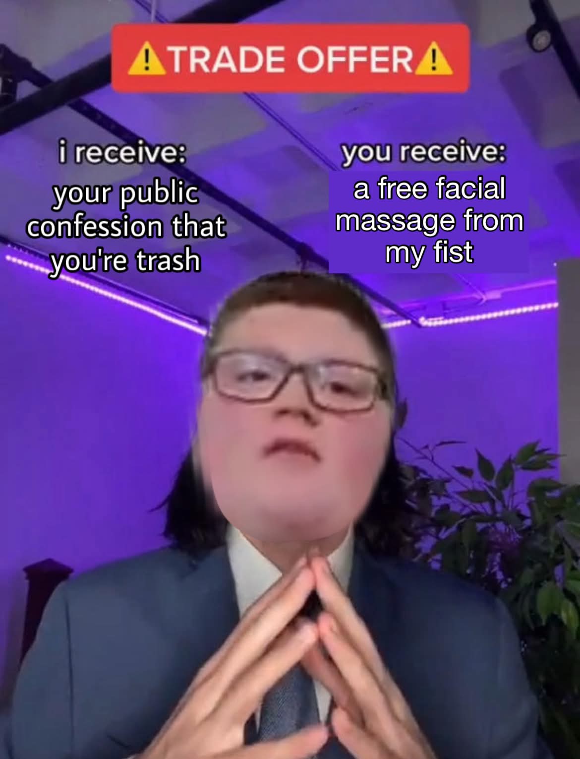 MTZ@lemmy.world to Lemmy Shitpost@lemmy.world · 18 hours agoPretty solid offer.lemmy.worldimagemessage-square22fedilinkarrow-up1515arrow-down18