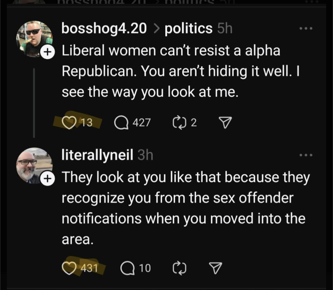 Mickey7@lemmy.world · 20 hours agoThanks for letting everyone know so you could embarrass melemmy.worldimagemessage-square2fedilinkarrow-up1151arrow-down110
