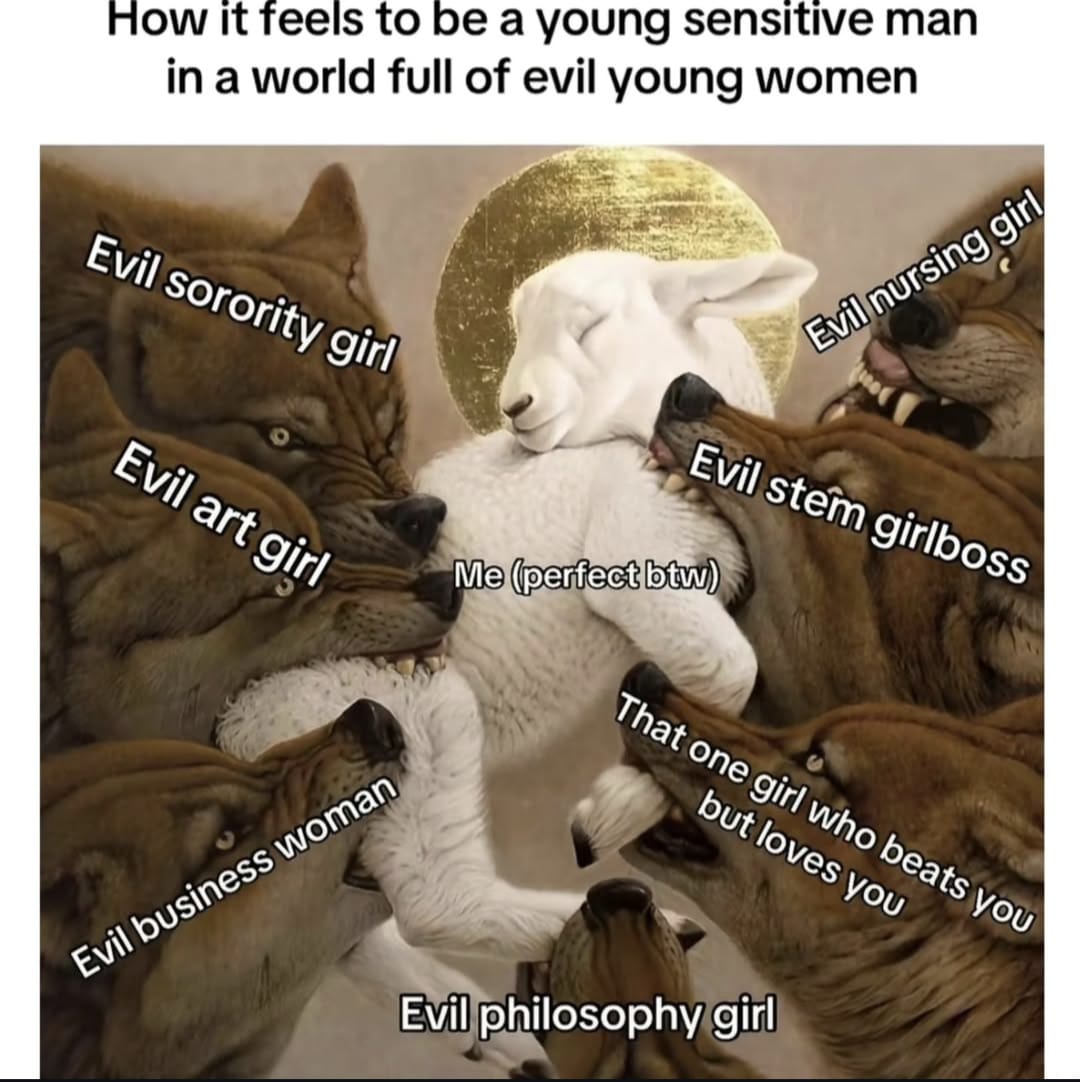 Track_Shovel@slrpnk.netEnglish · 2 days agoA lamb amongst wolvesplus-squareslrpnk.netimagemessage-square25fedilinkarrow-up1179arrow-down127
