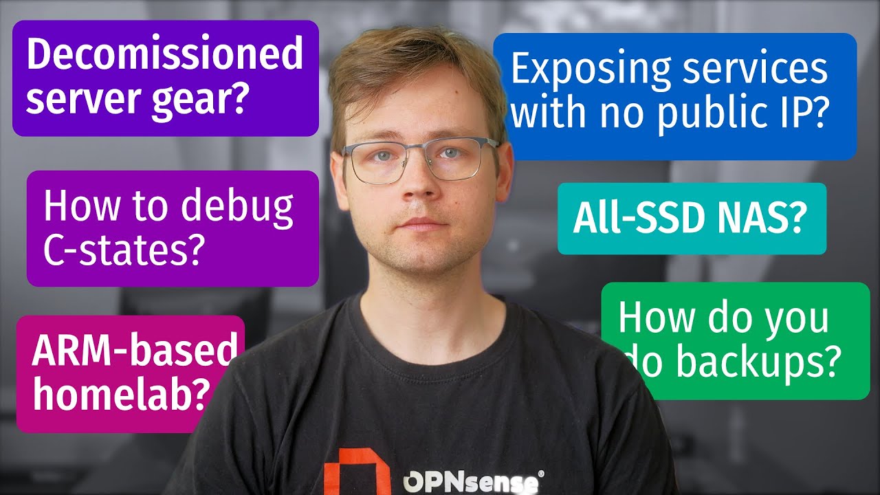 Chapters 00:00 Intro 01:47 Buying cheap and power hungry homelab gear 04:53 How to configure C-States? 07:59 Does Powertop hurt your performance? 08:43 How to find out what prevents HDD spindown? 10:05 Is an all-SSD NAS worth it? 12:21 ARM-powered homelab? 13:51 Exposing your homelab services? 16:40 TrueNAS/Unraid vs. a regular Linux distro? 17:59 My backup strategy 19:32 Getting friends and family into backups 20:05 Cheap VPS for hosting Headscale 20:48 To UPS or not to UPS? 21:39 My storage setup