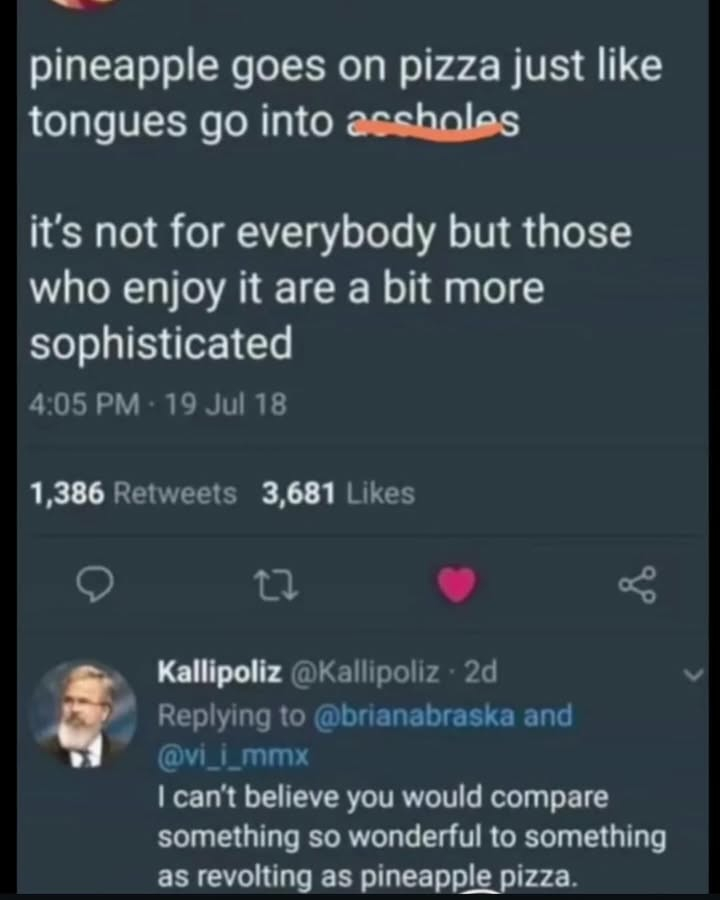 Ok, butt hear me out. Pineapple pizza on assholes!