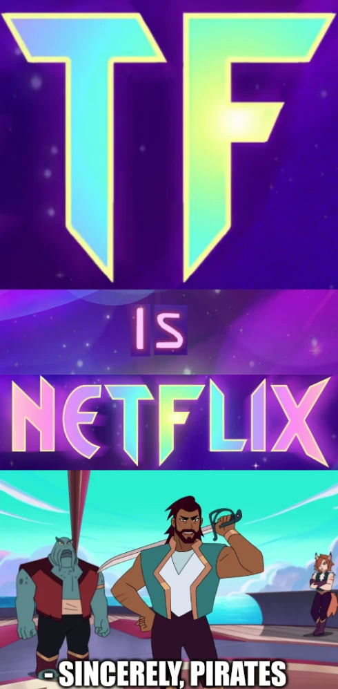 I don’t understand it. I know Netflix and pirates but I see no connection. What is TF?