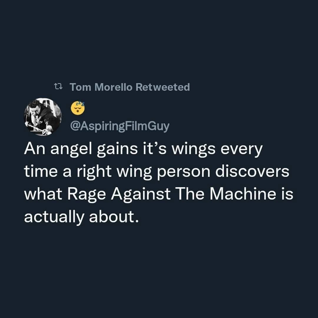 The last time rage against the machine came to my city, it was a corporate sponsored concert in a corporate named arena and the tickets were like $400. I don’t think RATM even knows what they used to be about anymore