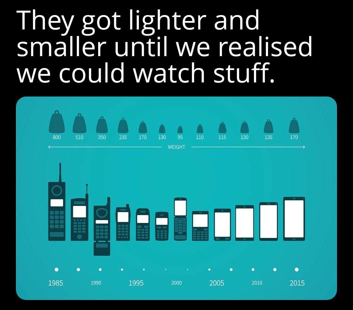 This graphic is missing the (de)evolution in phones when manufacturers unnecessarily started putting holes and notches in the screens.