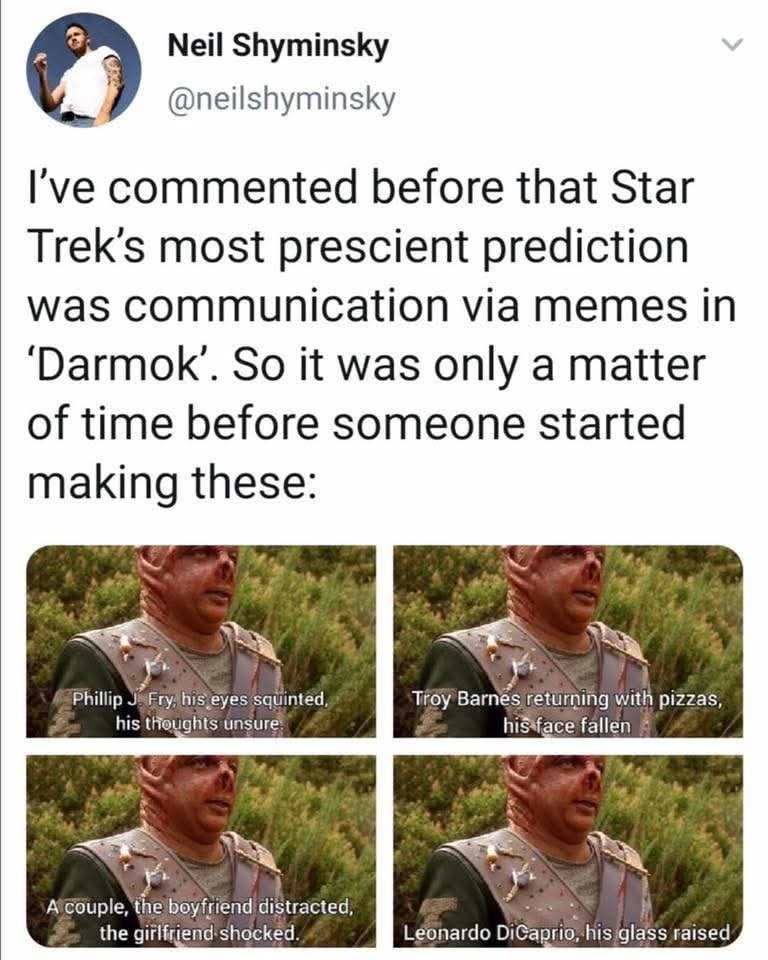 Picard, his face in palm. Riker, his grin wide.