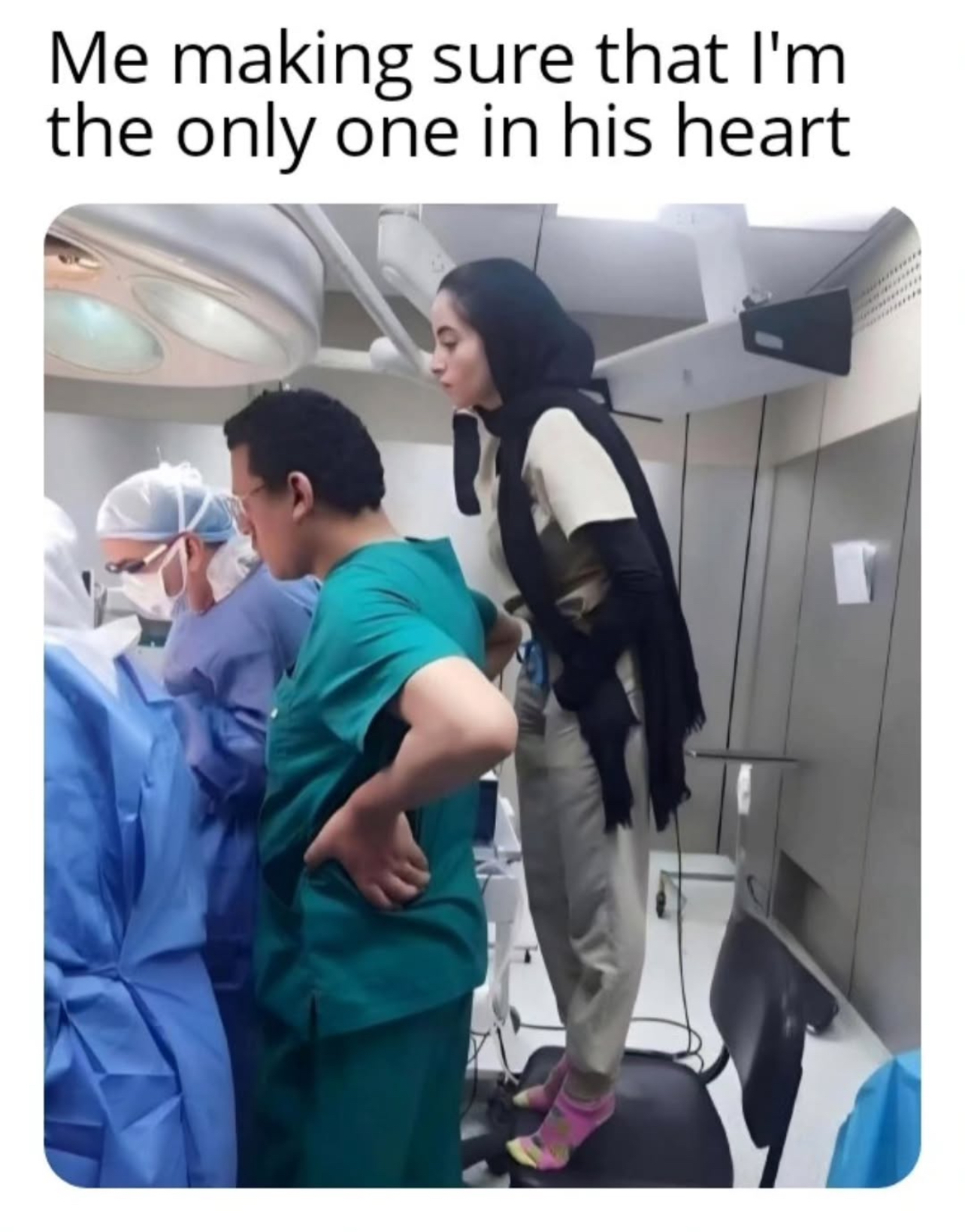 I find it nice that she removed her shoes to stand on a chair