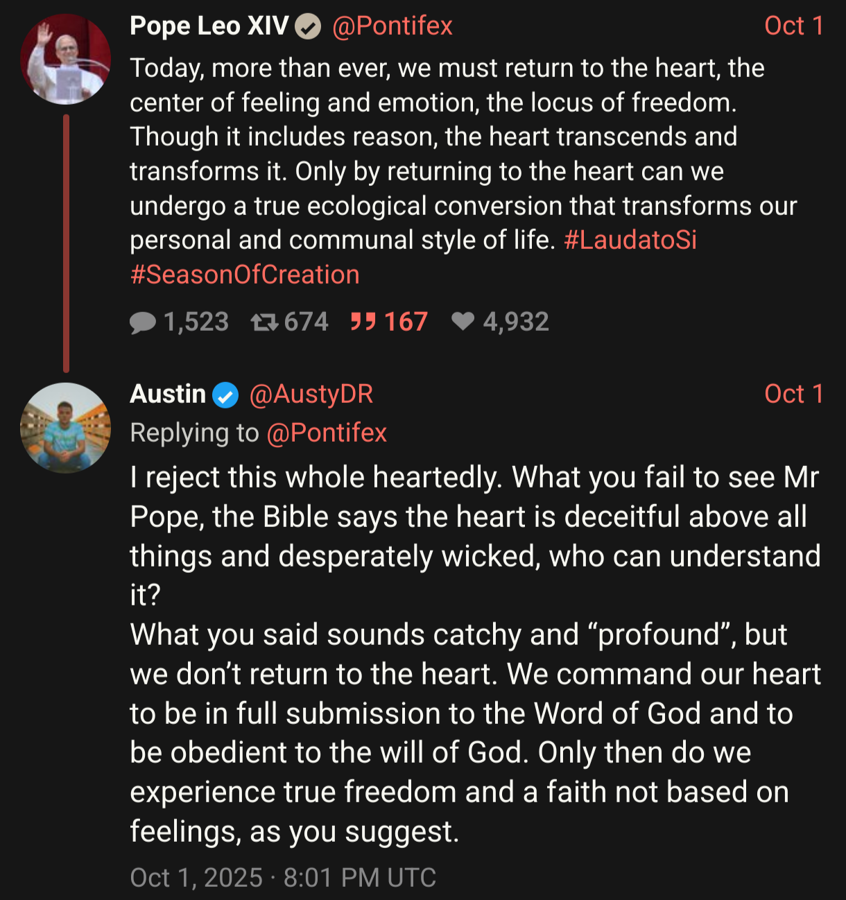If the pope got ratio’d by some guy mansplaining the bible to him, Christianity would have another schism