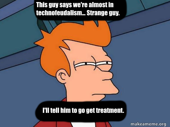 What people call “technofeudalism” is just capitalism, still, the idea that a handful of tech companies own a huge portion of critical online services is still capitalism, and that’s already been in place.