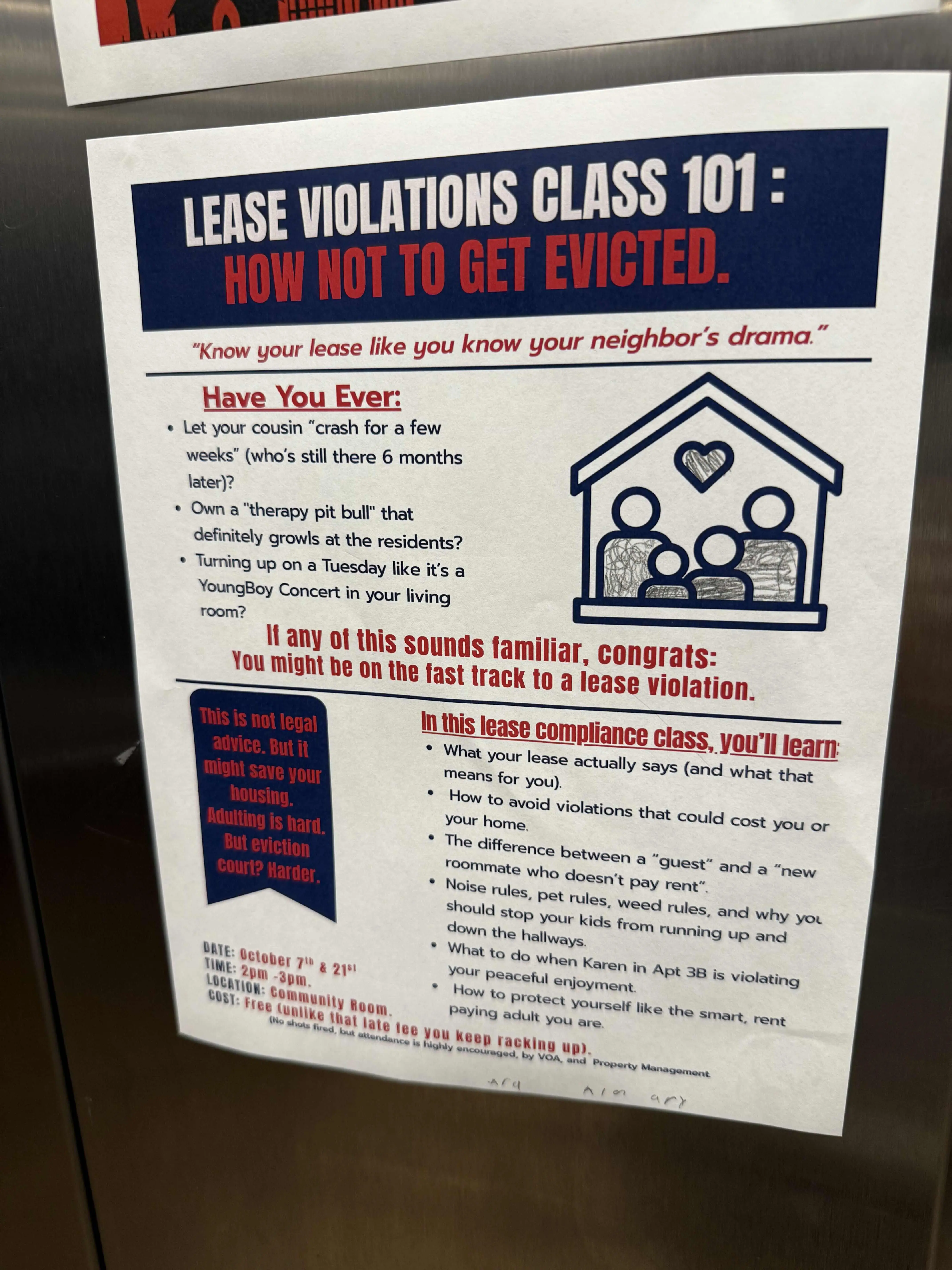 It says VOA at the bottom. Volunteers of America manages a ton of affordable and voucher-based properties around the country. Some of the people I’ve helped move into units with them have been on the streets for years and have zero living skills. A class like this could genuinely help someone stay housed who might otherwise lose their housing voucher and be back on the street
