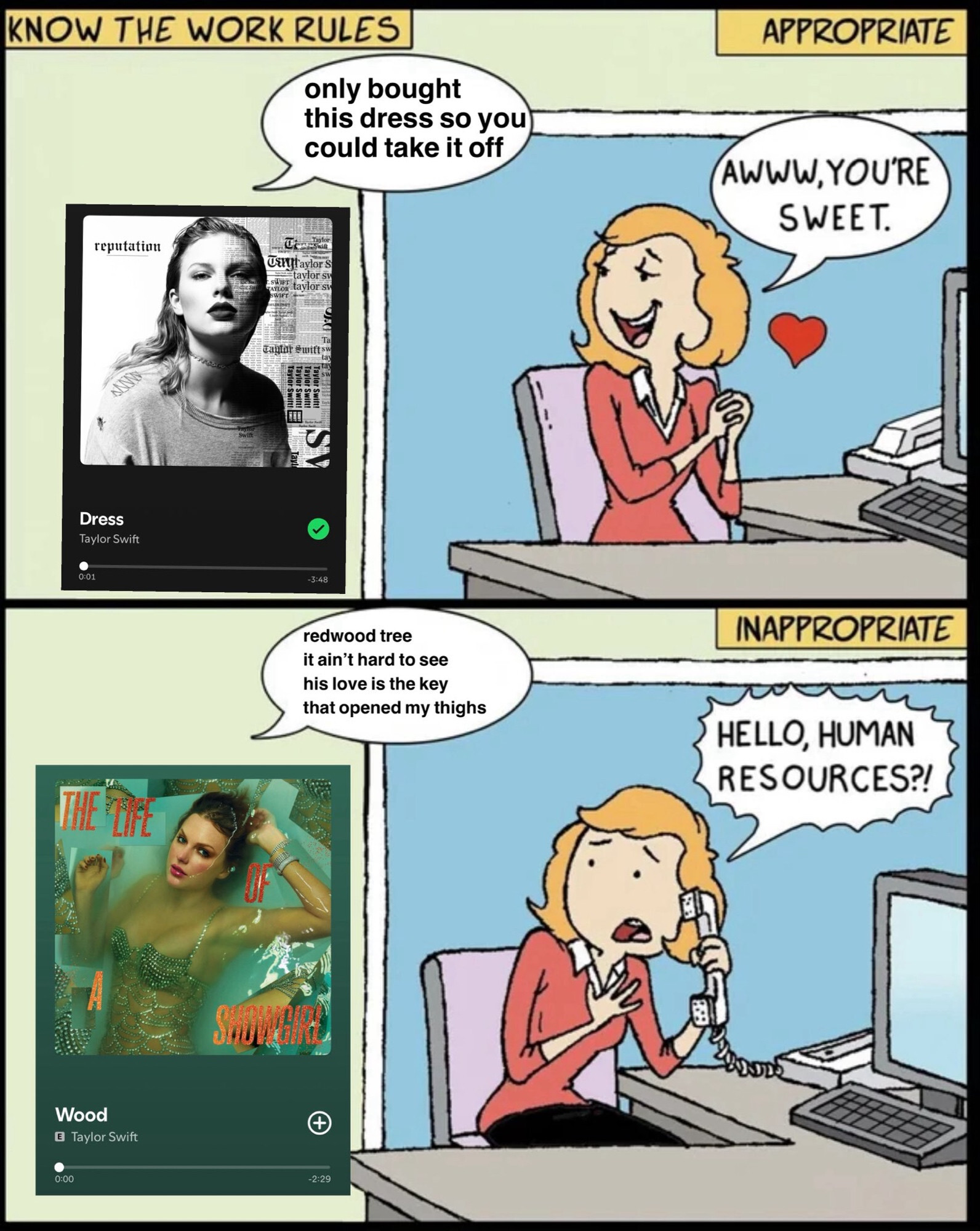 My girls a Swifty, says this one and a few others on the album are perma skips but there’s ones she likes on there. She did have me listen to two of the ones she didn’t like and I can confirm, pretty mid songs overall
