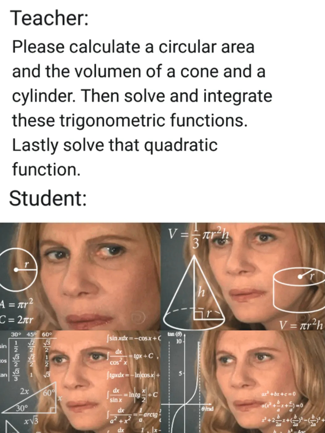 Most time would be spent solving the integrals of the trigonometric functions. Those are the kind, that you either just know, or would typically look up in a table, which is where they were taken from for the meme. Though you could do them by hand using substitution.