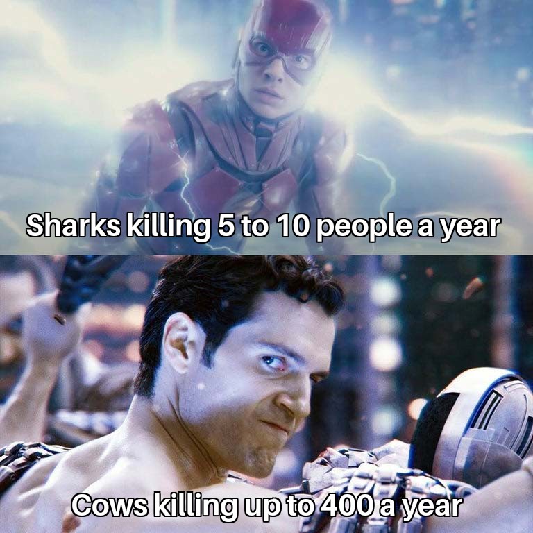 The cows kill count would go up even more if you count air/water pollution and food borne illnesses caused by their manure on produce