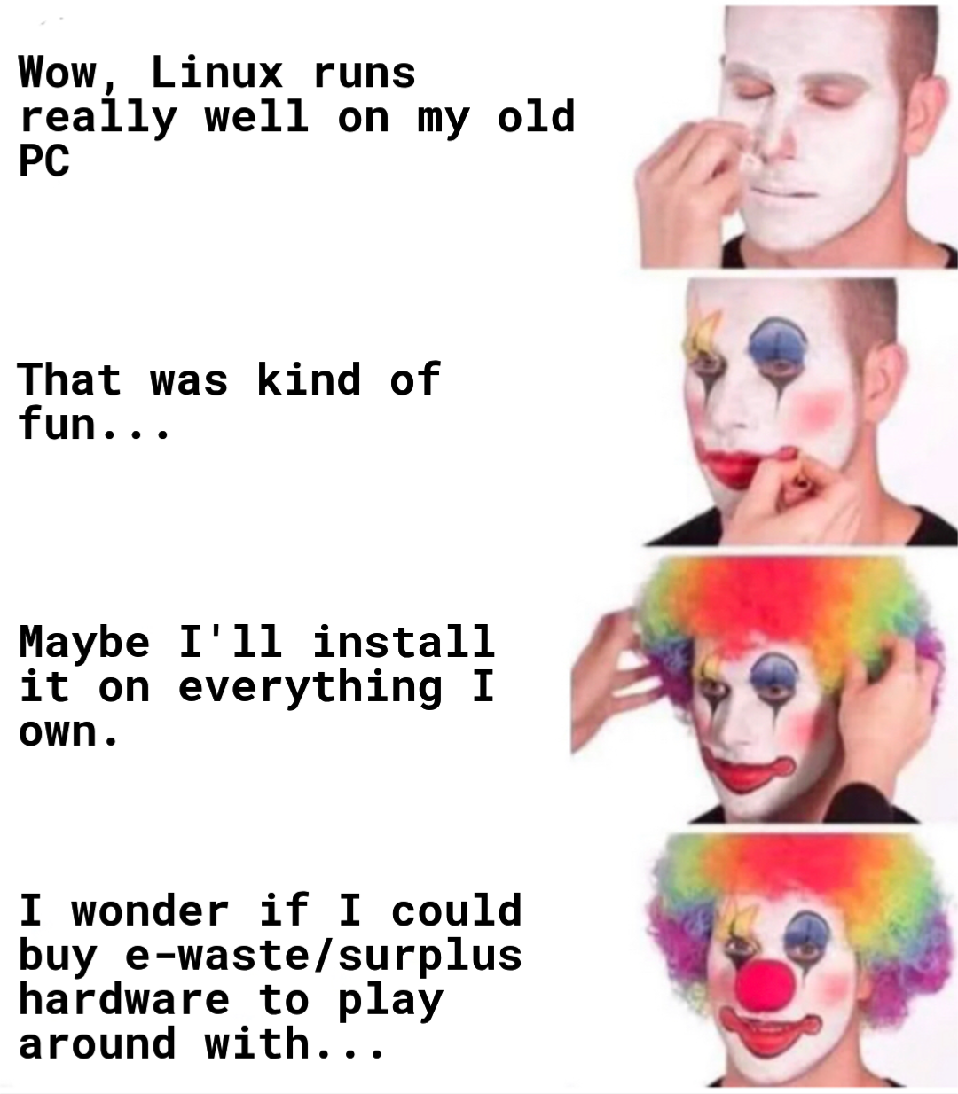 I started my Linux journey as a poor high school college student and while I got hand-me-down windows machines at home, I worried about breaking them fiddling with things beyond my knowledge level. A budget basement eeePC became my workbench and I started tinkering. I had to drive to the next city to find one in stock. Today the gas would cost more than the computer. :-D