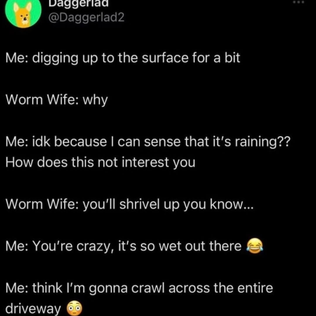 Late Worm: “Has anyone seen my son? i was meant to pick him up from practice but I was stuck in traffic”