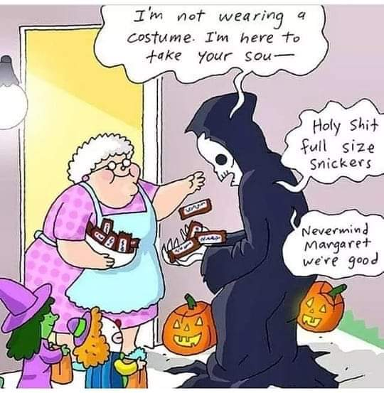 Was really hoping Death would be wearing one, too. This was posted by the comic’s creator, so I guess Margaret canonically dyes her hair?