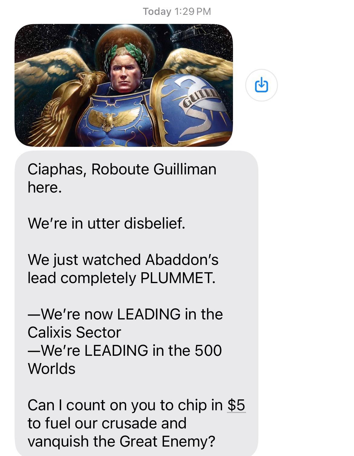 Text BLOOD FOR THE BLOOD GOD for immediate Exterminatus.
