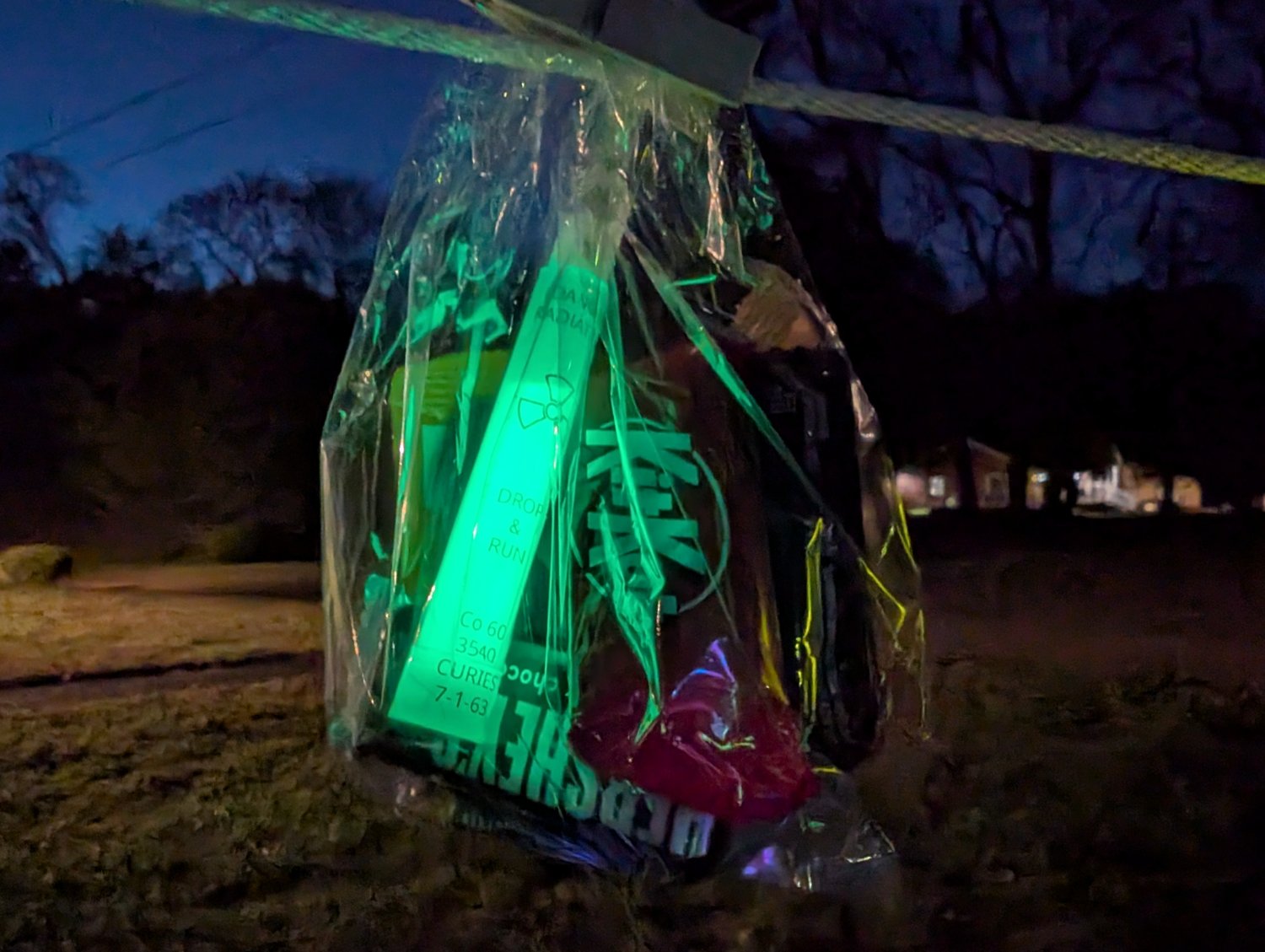 if anyone, like I did, have the slightest doubt that this is not a prank, or a joke, consider we are here in “shitposting” community and this glowing thing looks like a plastic “glow stick” with liquid inside. This is quite different from the metallic container that would contain radioactive solid metallic Cobalt inside (not translucent and not liquid).