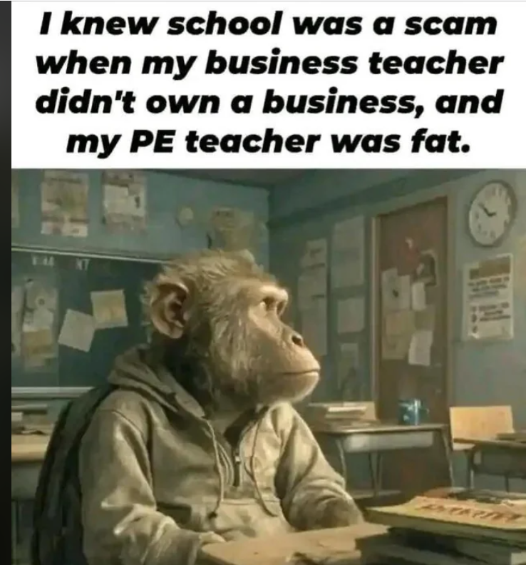 Seriously lol. “My PE teacher is fat therefore education is worthless. I’m very intelligent.”