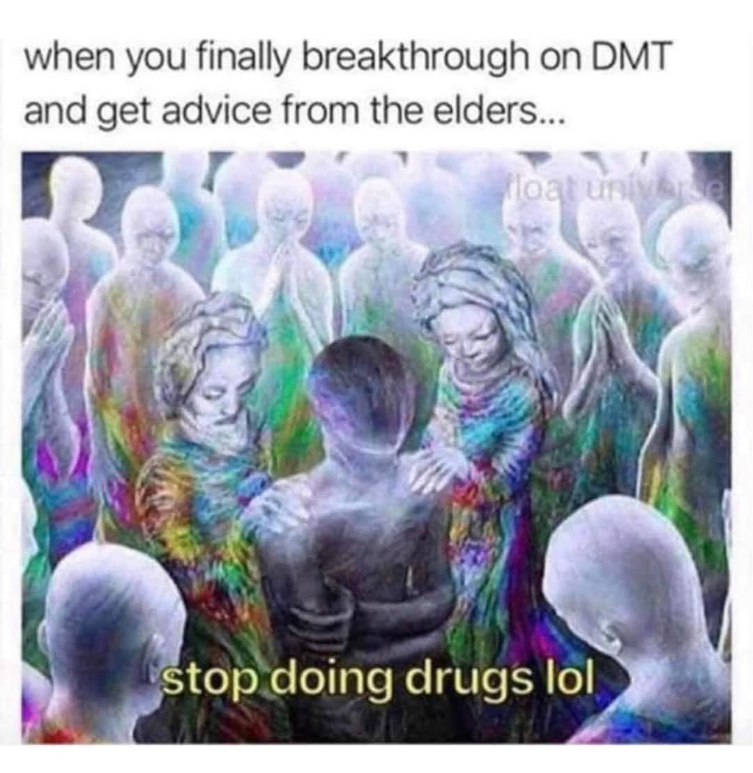 Dmt told me to stop hanging out with druggies aka my friends who got into meth. Taking drugs is fine, being a druggie isn’t.