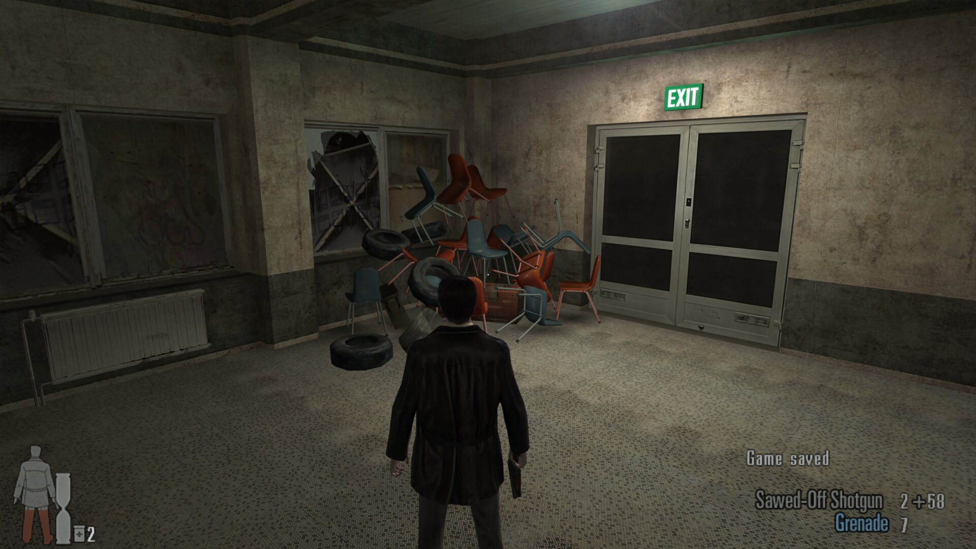 Today’s game is some more Max Payne 2. I was kind of dreading doing the Construction Site again, as last time it was a struggle. Surprisingly though it was a easy time. I guess my experience from my first play through carried over and made this a cake walk. I found this room full of explosives and a pile of chairs. I let myself have a little fun and detonated it and watched the chairs fly away. I took some damage from it but it was well worth it.