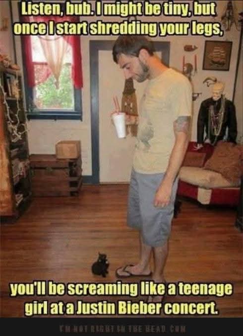 By the time you could react to the pain she would instantly jump off and run away. One day I was sitting crosslegged on the floor and she jumped onto the small of my back and started biting. It was rather hilarious because of her size I could not reach her.
