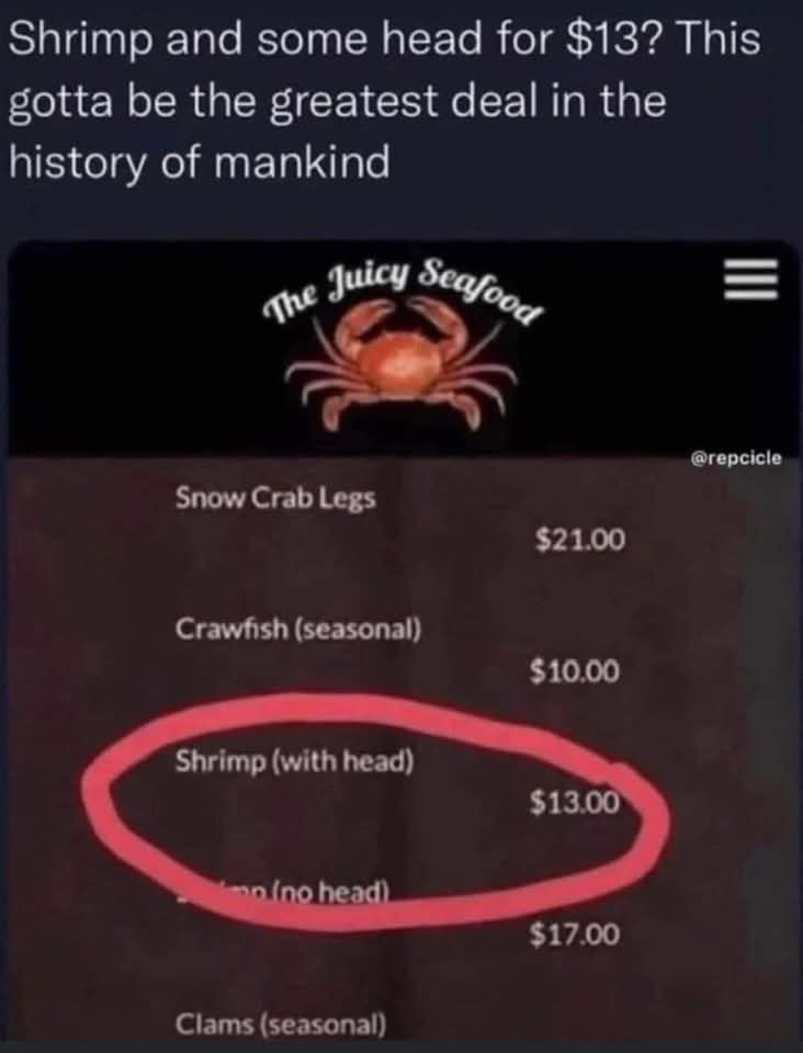 Are you trying to tell me a shrimp is giving this head?