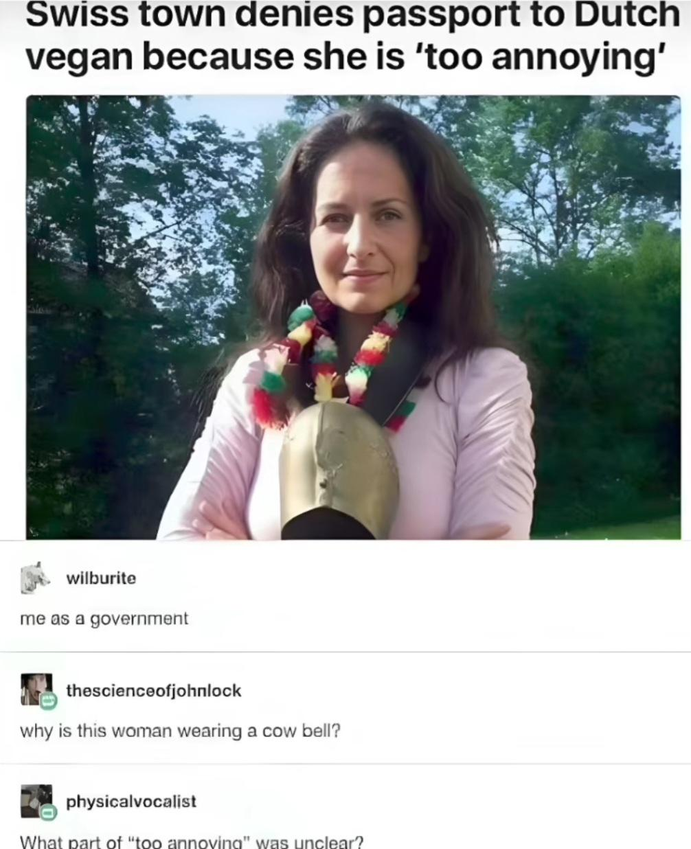Also this story is very old but gets reposted all the time always explicitly stirring anti-vegan snark with captions like “Least annoying vegan”.