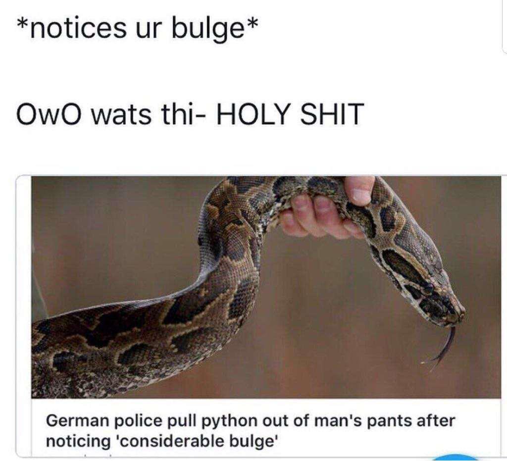 I always thought “i have a huge snake in my pants, you wanna see it?” is just a bad pick-up line.