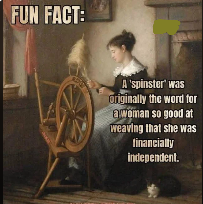I could not verify the “so good at weaving that she was financially independent” part. According to wikipedia it originally refered to women who spun wool - usually unmaried women. Over time it became derogatory.
