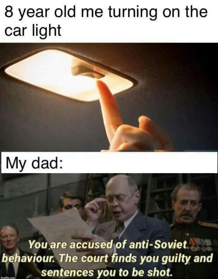 Damnit… it’s come full circle. Now I’m the dad, and saying the same thing to my 3yo when he turns the light on as he gets in his car seat.