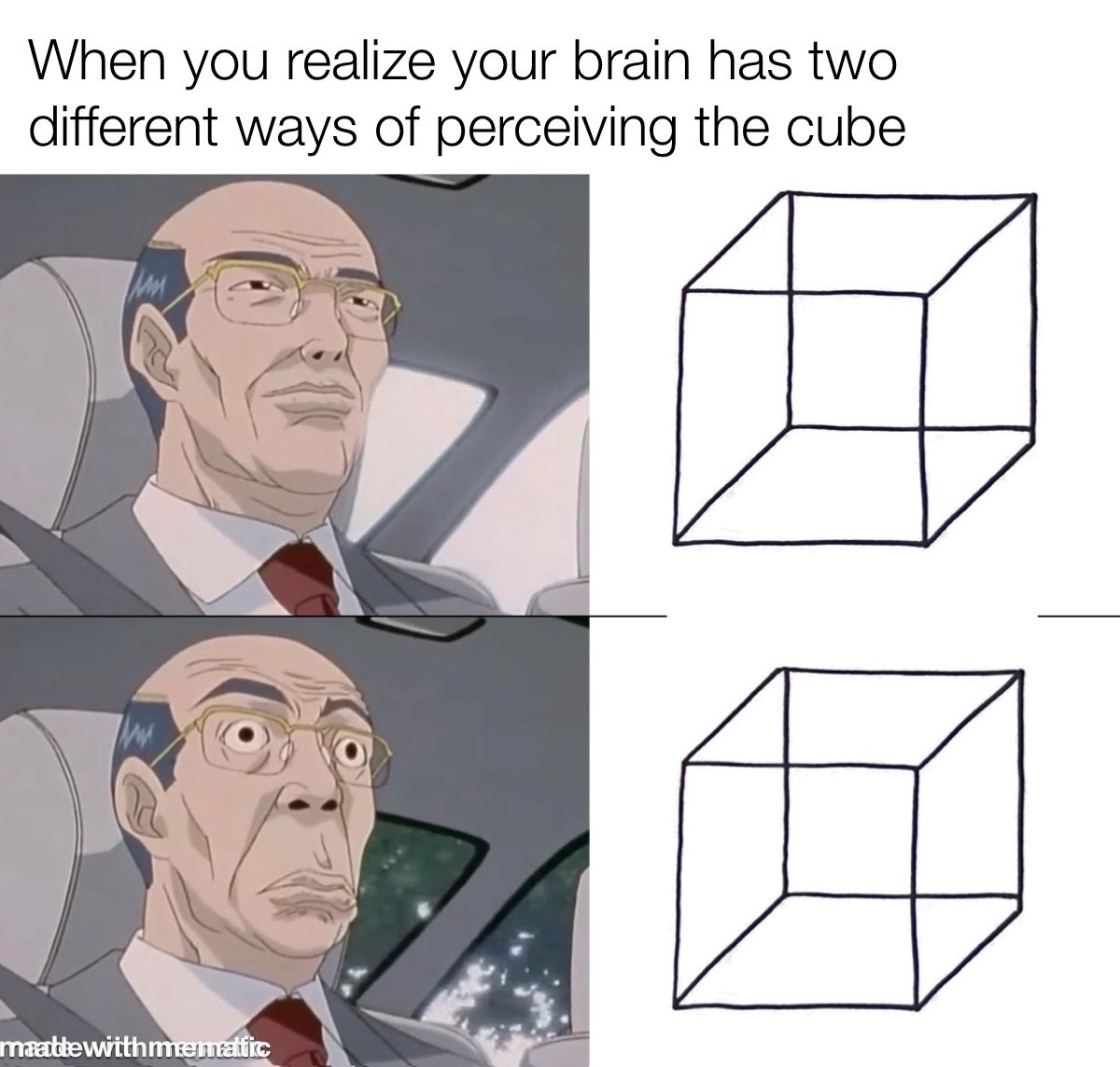 Wait… so ig the illusion works because ur brain has to decide which face is the front face ig…