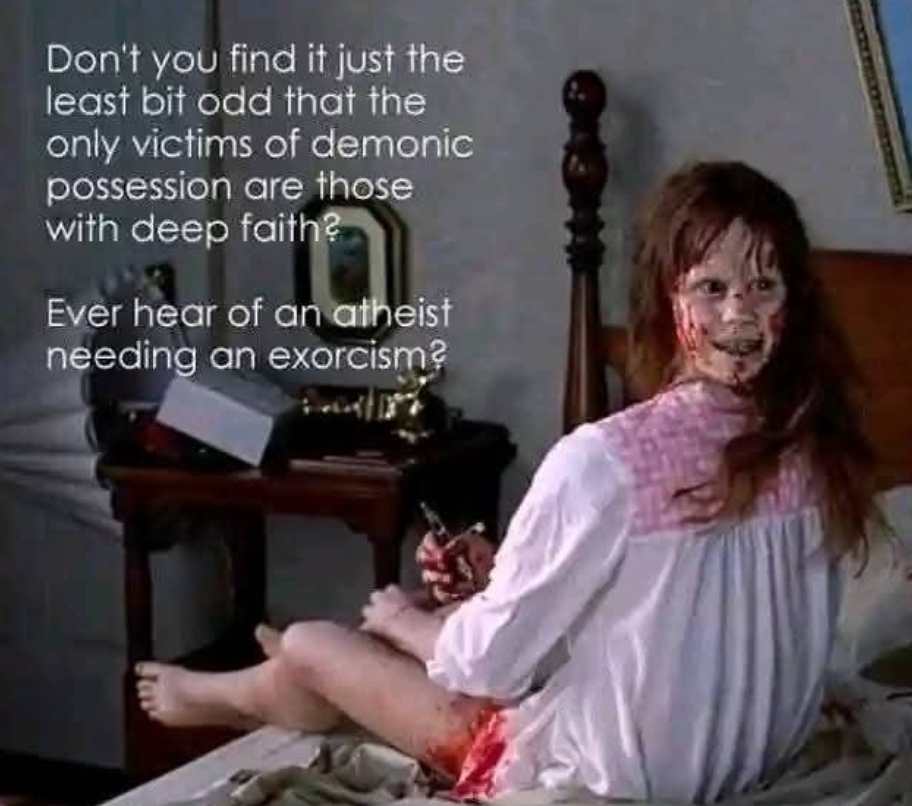 Growing up in the 80s/90s, I 100% heard about how everything from Heavy Metal music to D&D to Voting for Michael Dukakis caused the godless heathens to become possessed and driven to deplorable acts. Exorcisms are for people with insider access to high ranking church officials. The folks living outside of the fence - the migrants, the hippies, the drug users, the fornicators and exotic dancers, the non-believers - why do you think they have all that crime and disease and misery?