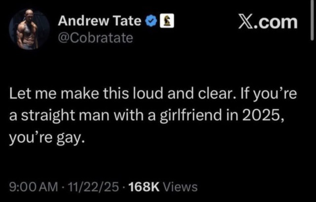 Because people are commenting here like Tate actually said and meant that. I mean we all know he is full shit, but he cannnot be that stupid, right
