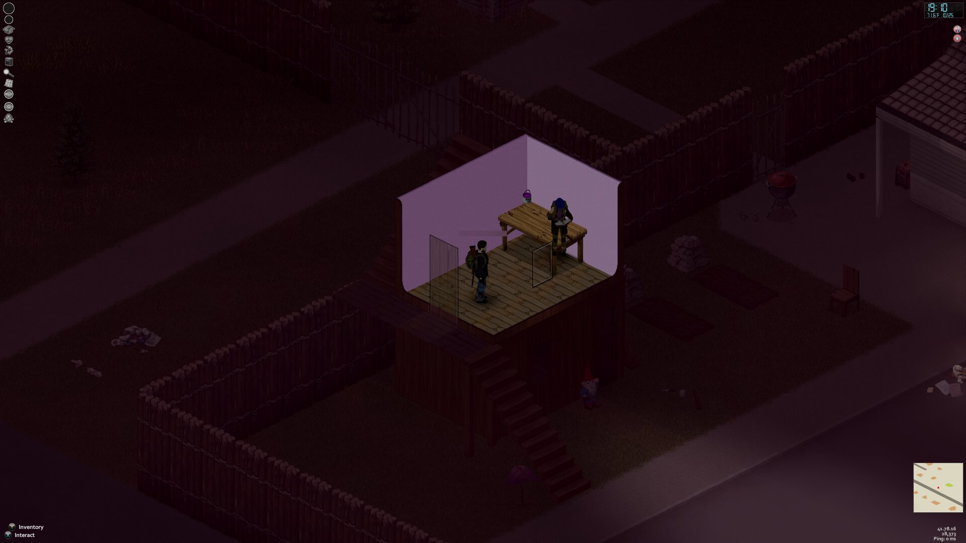We spent the entire rest of the day cleaning up the base. I built a second floor to the shack and even plastered and painted it, which is nice. It was lacking a window, and I just learned I can install windows on buildings I make myself. I had assumed you just couldn’t, but nope. It is an option. You just steal them from another house with a crowbar. Now that I think about it, you could really fuck up another player’s build just by stealing their window. Though, at that point, you could just sledgehammer it down too.