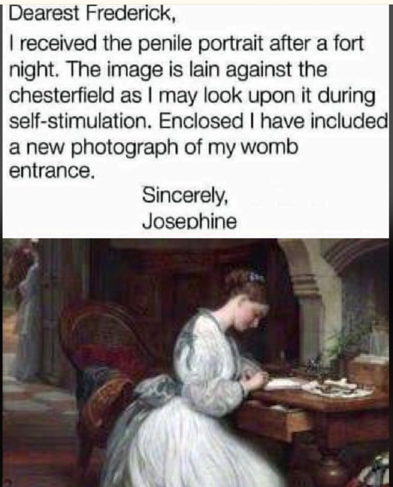 I did as you told me, you dirty little girl, and pulled myself off twice when I read your letter. I am delighted to see that you do like being fucked arseways. Yes, now I can remember that night when I fucked you for so long backwards. It was the dirtiest fucking I ever gave you, darling. My prick was stuck up in you for hours, fucking in and out under your upturned rump. I felt your fat sweaty buttocks under my belly and saw your flushed face and mad eyes. At every fuck I gave you your shameless tongue come bursting out through your lips and if I gave you a bigger stronger fuck than usual fat dirty farts came spluttering out of your backside. You had an arse full of farts that night, darling, and I fucked them out of you, big fat fellows, long windy ones, quick little merry cracks and a lot of tiny little naughty farties ending in a long gush from your hole. It is wonderful to fuck a farting woman when every fuck drives one out of her. I think I would know Nora’s fart anywhere. I think I could pick hers out in a roomful of farting women. It is a rather girlish noise not like the wet windy fart which I imagine fat wives have. It is sudden and dry and dirty like what a bold girl would let off in fun in a school dormitory at night. I hope Nora will let off no end of her farts in my face so that I may know their smell also.