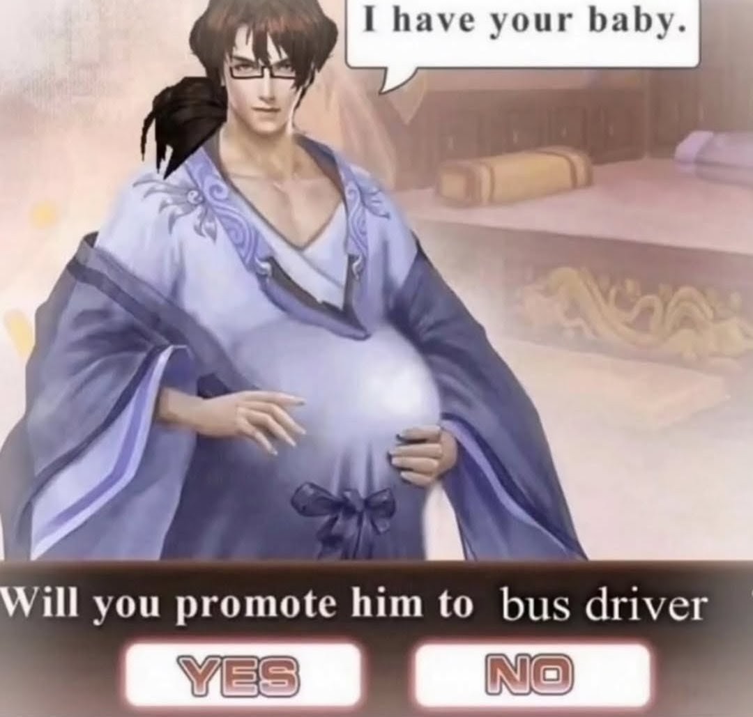 my pregnant male consorts are the only people i want operating heavy machinery