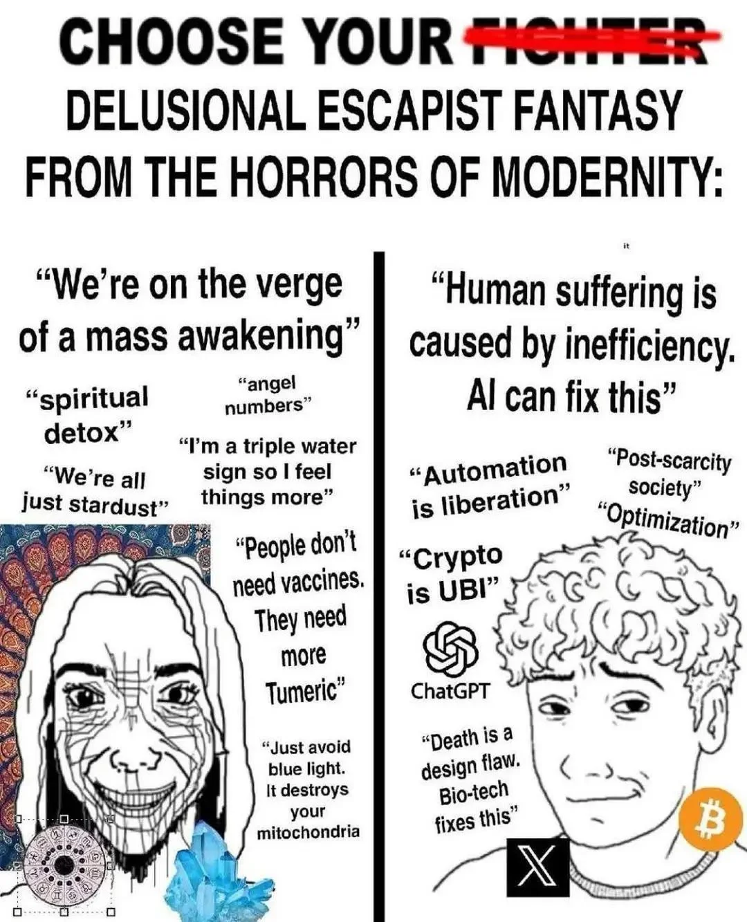 minus-squareexplodicle@sh.itjust.workslinkfedilinkEnglisharrow-up0·1 day agoThat’s just the guy on the right but with less hope and no capitalism.