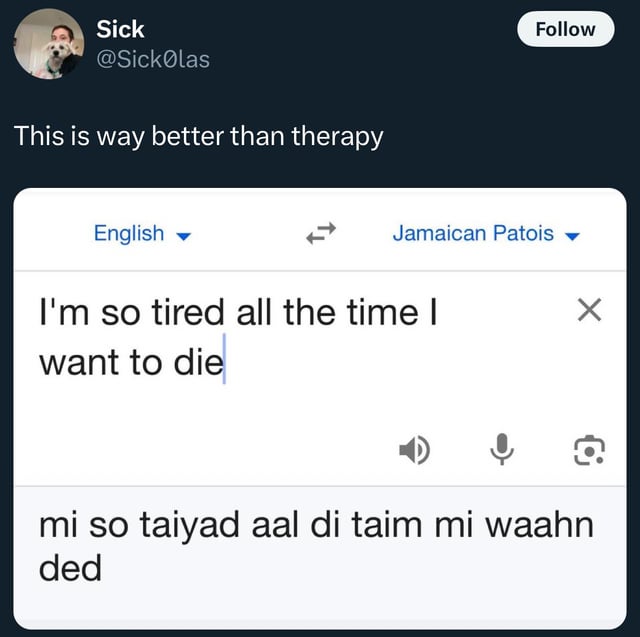 To clarify, patois is a generic term, as is creole, and can apply to any non-standardized language and is not specific to any particular location or group or language. That’s why it’s called “Jamaican patois” in the screenshot.