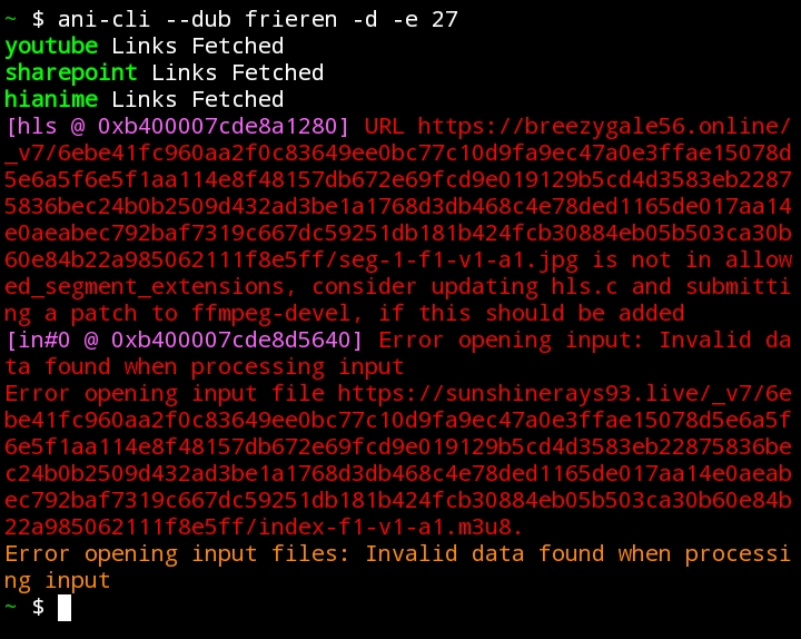 Uri@infosec.pub to Piracy: ꜱᴀɪʟ ᴛʜᴇ ʜɪɢʜ ꜱᴇᴀꜱ@lemmy.dbzer0.comEnglish · edit-215 days ago[fixed] Can anyone help me? I'm getting this error while downloading with ani-cli. I'm using it on termuxinfosec.pubimagemessage-square7fedilinkarrow-up135arrow-down11