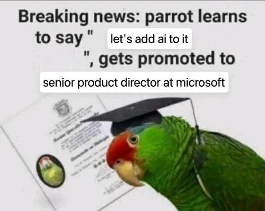 breaking: [stochastic] parrot learns [absolutely nothing], gets promoted to [senior engineer at microsoft]