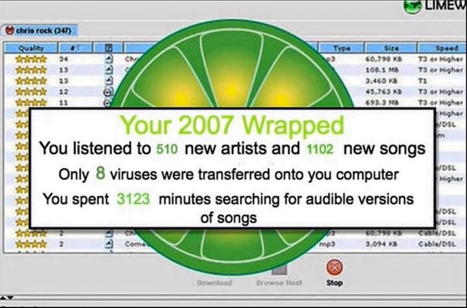 arrow-up11.18Karrow-down1imageDid you get your Limewire Wrapped?lemmy.worldThe Picard Maneuver@lemmy.worldM to memes@lemmy.world · 2 days agomessage-square122fedilink