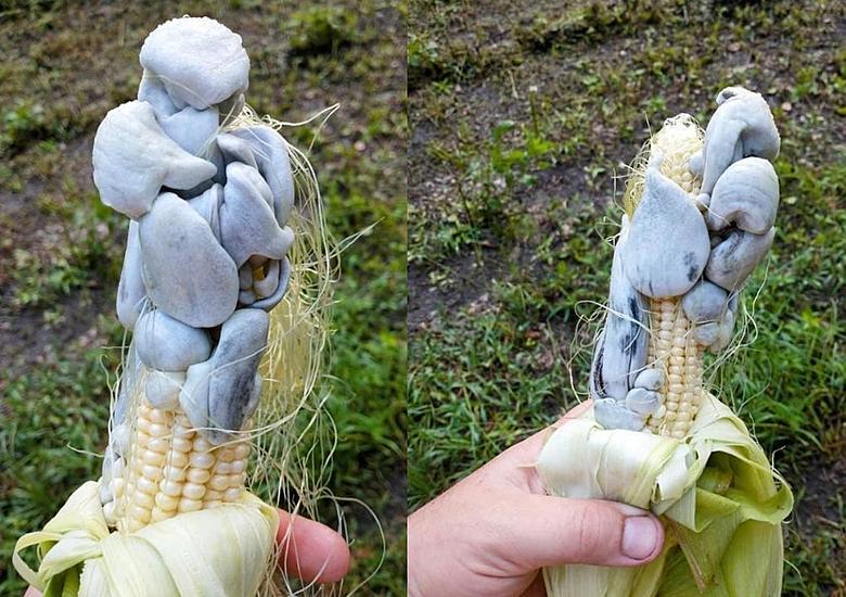 While deletirious, and often considered a blight by farmers, the immature galls can be sold for many times more than the corn if it had not been infected. They are called huitlacoche when being used as culinary, and are described as tasting sweet and savory with earthy tones.