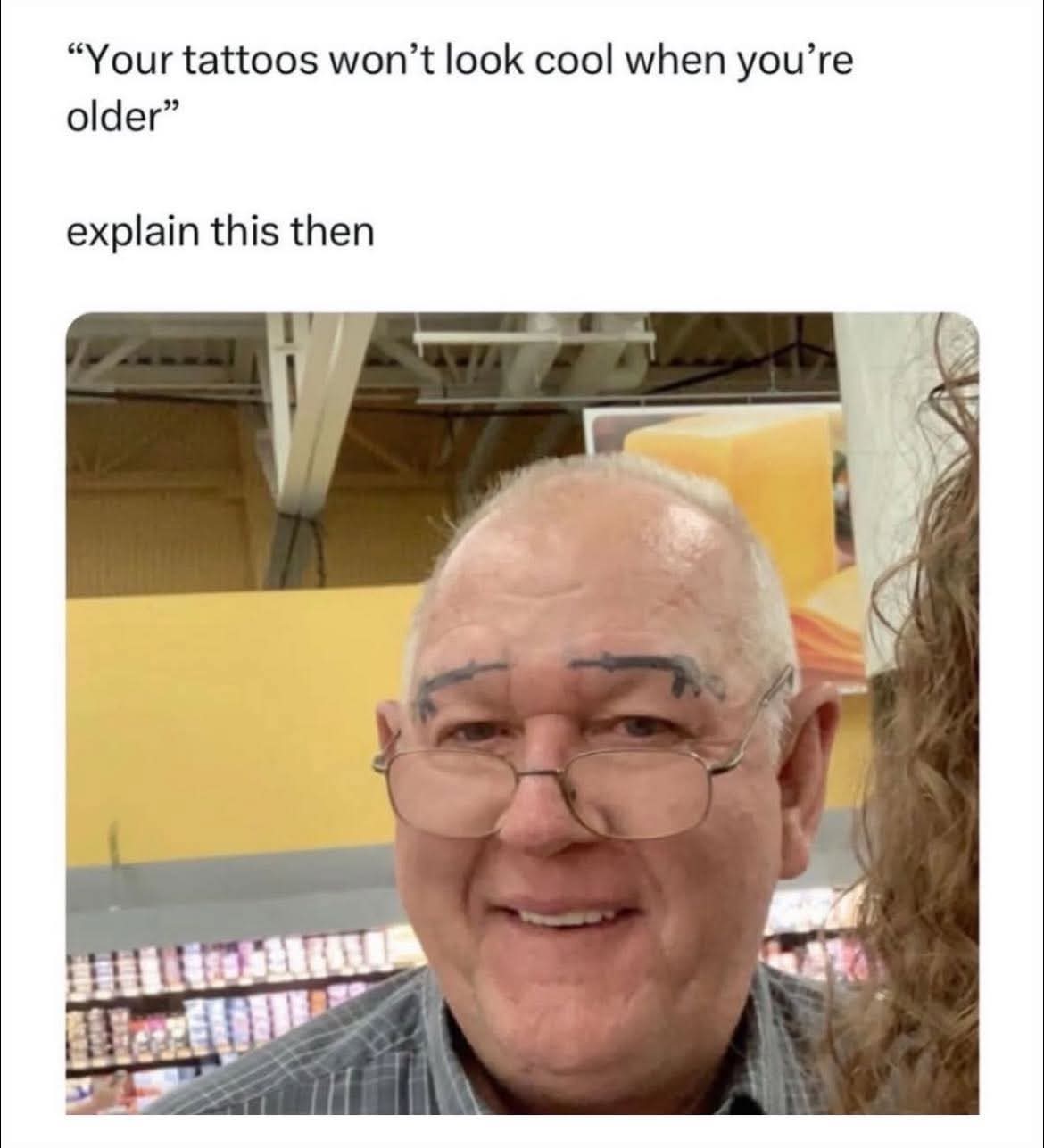 minus-squareTreczoks@lemmy.worldlinkfedilinkarrow-up14·8 days agoEasy explanation here: a not smart person and a dumb tattoo.
