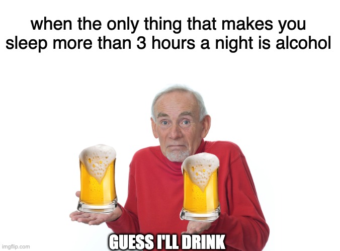 arrow-up1144arrow-down1imageEver since I quit drinking three years ago, I've gotten a good night's sleep a handful of timeslemmy.worldalias_qr_rainmaker@lemmy.world to memes@lemmy.world · 3 days agomessage-square65fedilink