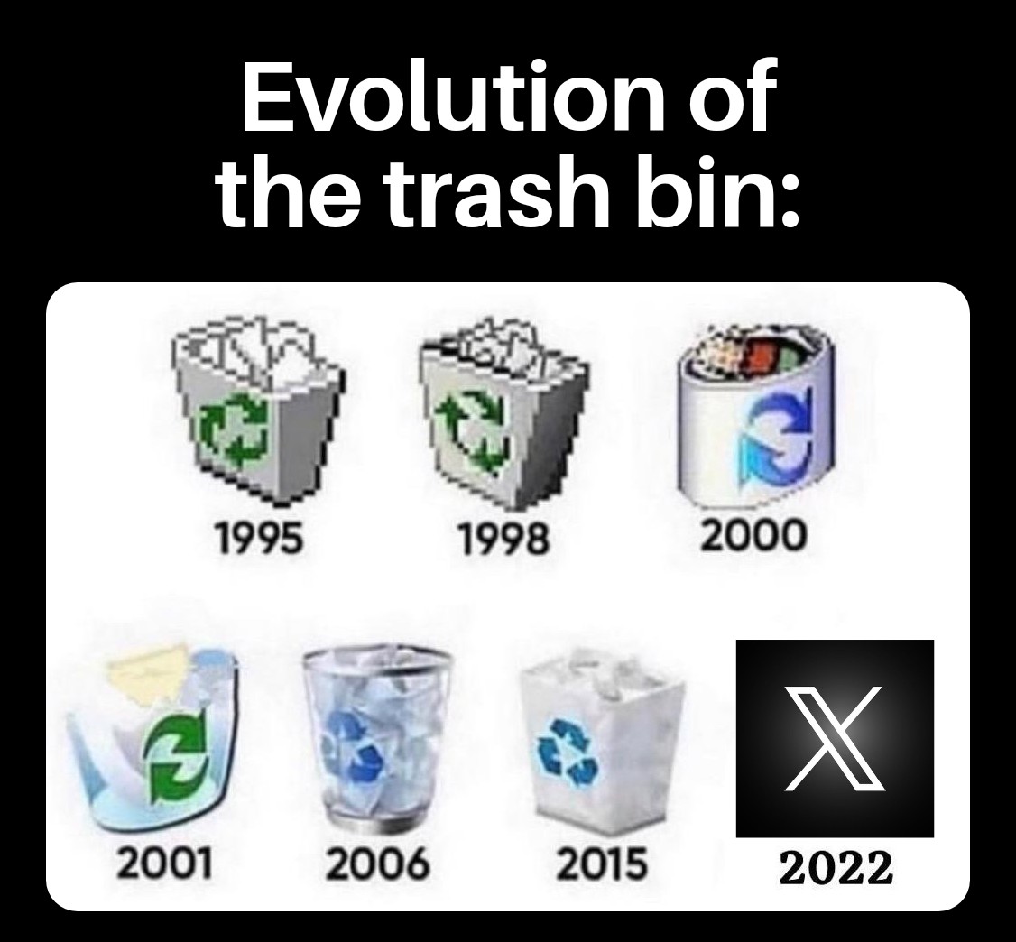 This always gets posted (without the X part) and I refuse to believe they put the Windows logo in the bin. Too lazy to actually check though. 🚮
