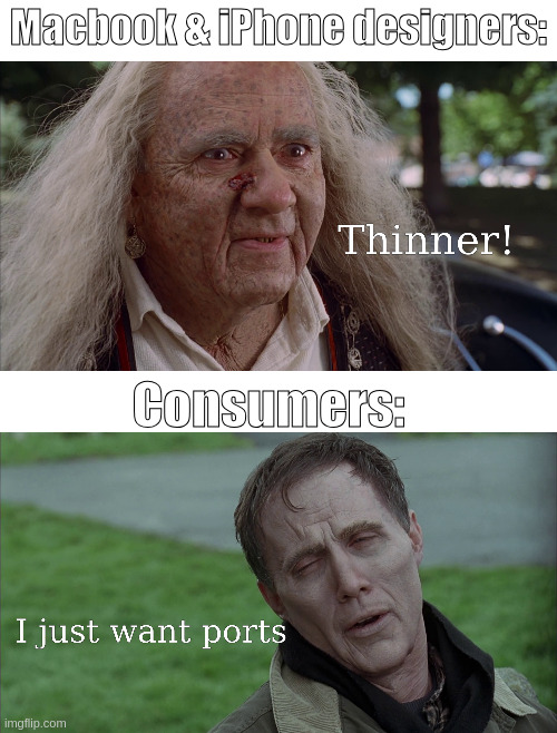 iPhones are thicker then ever (except for the air but it flopped) and no ports, worst of both worlds 😒