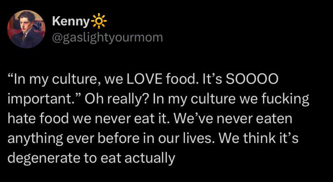 ByteOnBikes@discuss.online to Lemmy Shitpost@lemmy.world · 1 day agoMy culture also loves music, dancing and telling storiesdiscuss.onlineimagemessage-square246fedilinkarrow-up11.23Karrow-down121